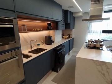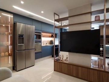 Cozinha com passagem de serviço para o terraço gourmet