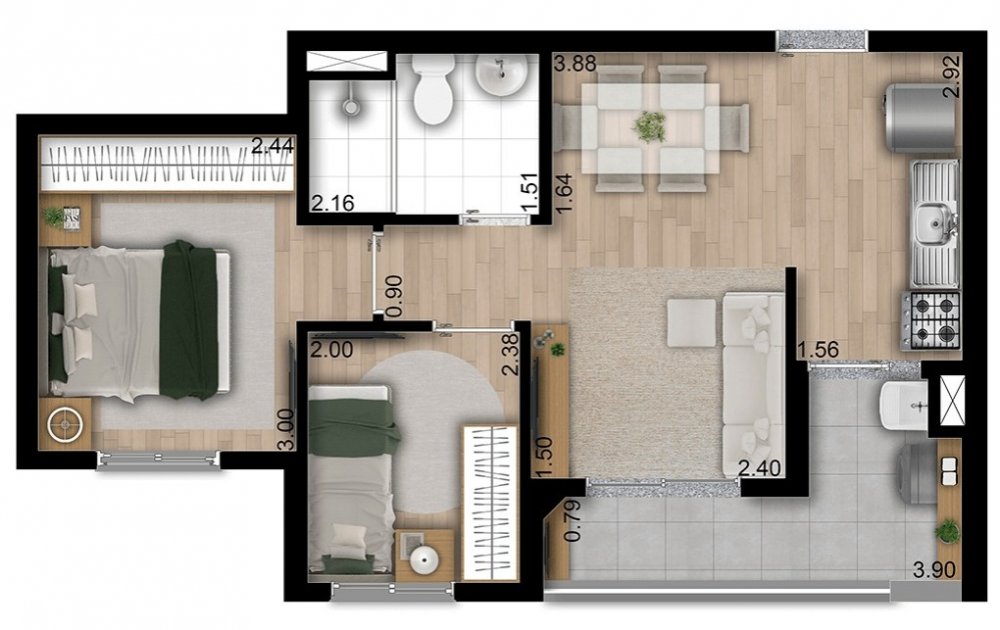 Apartamento Dois Dormitórios com Varanda e Vaga.