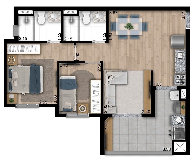 Mais DetalhesDormitórios2 Banheiros1 Garagens1 - Cód. Referência: GRAN-SPAZIO