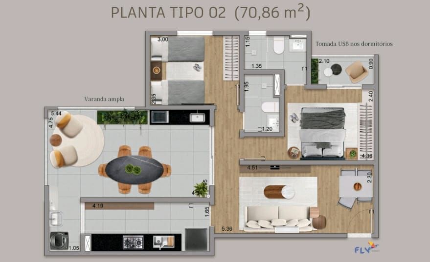 - Área Total: 70 m² (R$ 7.642/m²)