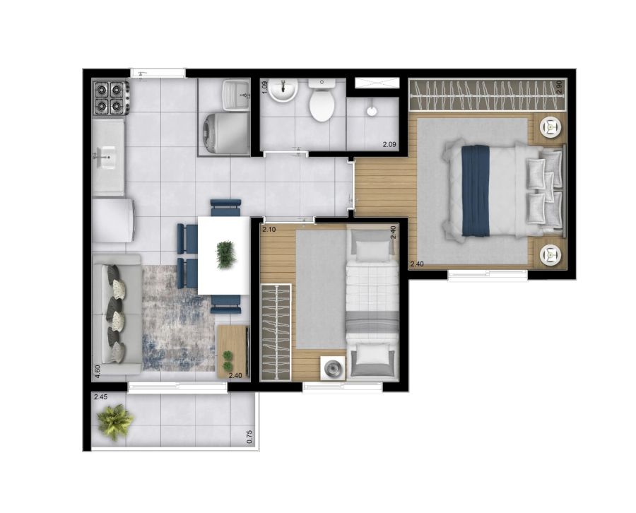Mais DetalhesDormitórios2 Banheiros1 - Cód. Referência: HYPE-PIATA-2D