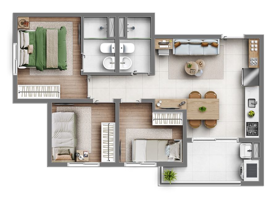 Apartamento à Venda com 3 dormitórios, sendo 1 suíte, 50 m²