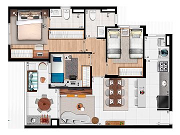 Apartamento à Venda com 3 dormitórios, sendo 1 suíte, 74m²