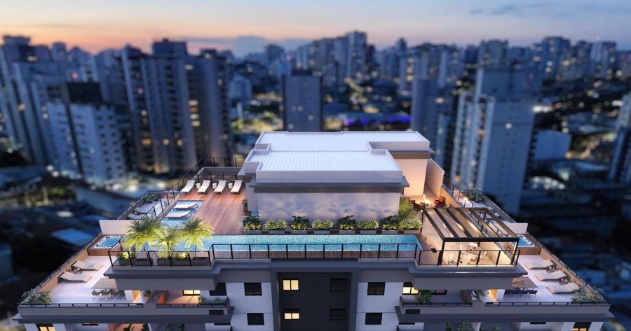 Lazer no rooftop com vista panorâmica da cidade