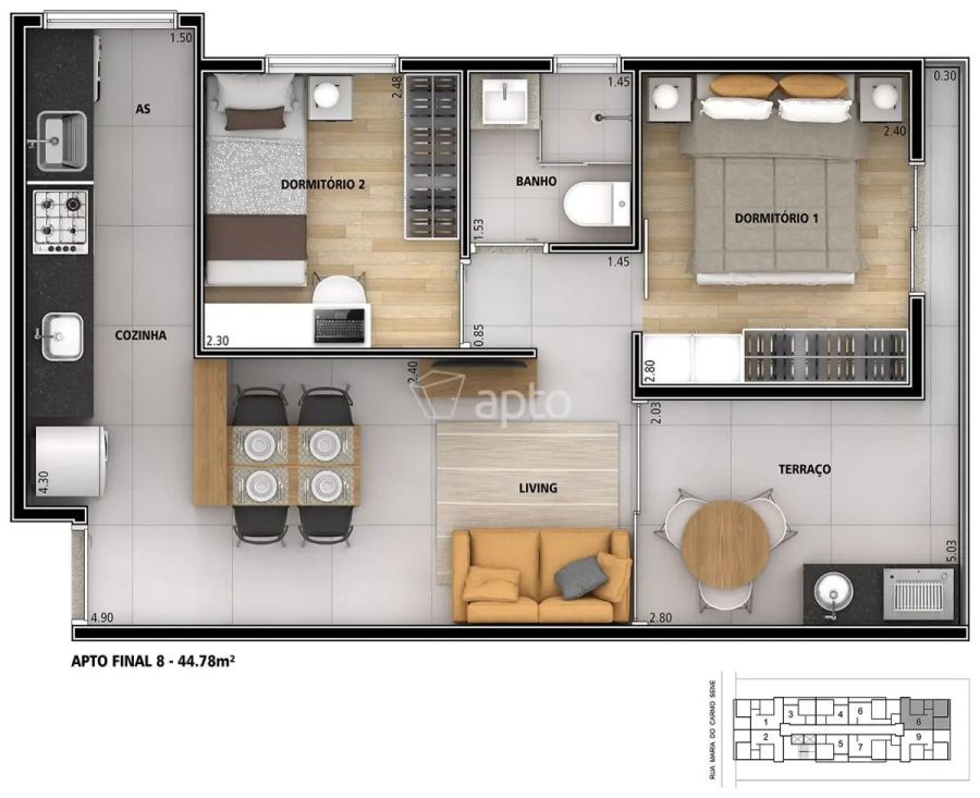 - Área Total: 44 m² (R$ 11.363/m²)